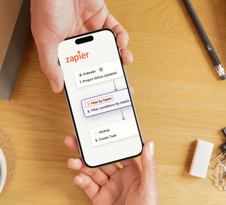 Designed and implemented a comprehensive, automated workflow to streamline client onboarding. This project involved creating custom forms in Dubsado, automating welcome emails and contract sending, and seamlessly triggering a new project in ClickUp upon client signing.